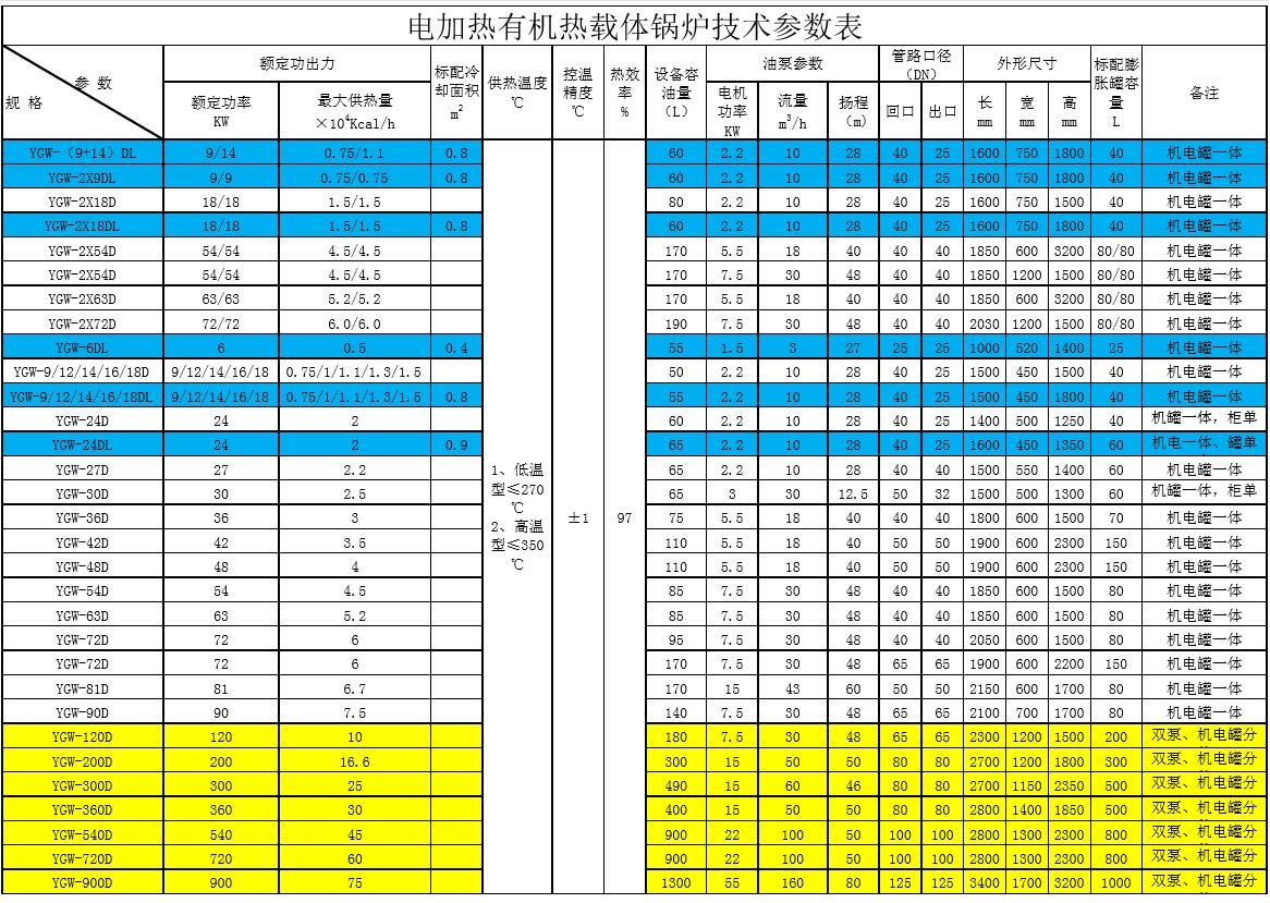 YGW系列電加熱有機(jī)熱載體鍋爐(俗稱油加熱器)是一種以有機(jī)熱載體為傳熱介質(zhì),以冷卻水(軟化水)或空氣為換熱降溫介質(zhì),采用電加熱升溫,通過(guò)熱油泵強(qiáng)制循環(huán)的供熱和調(diào)溫設(shè)備。